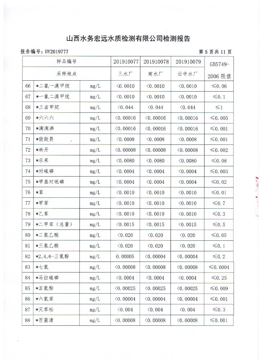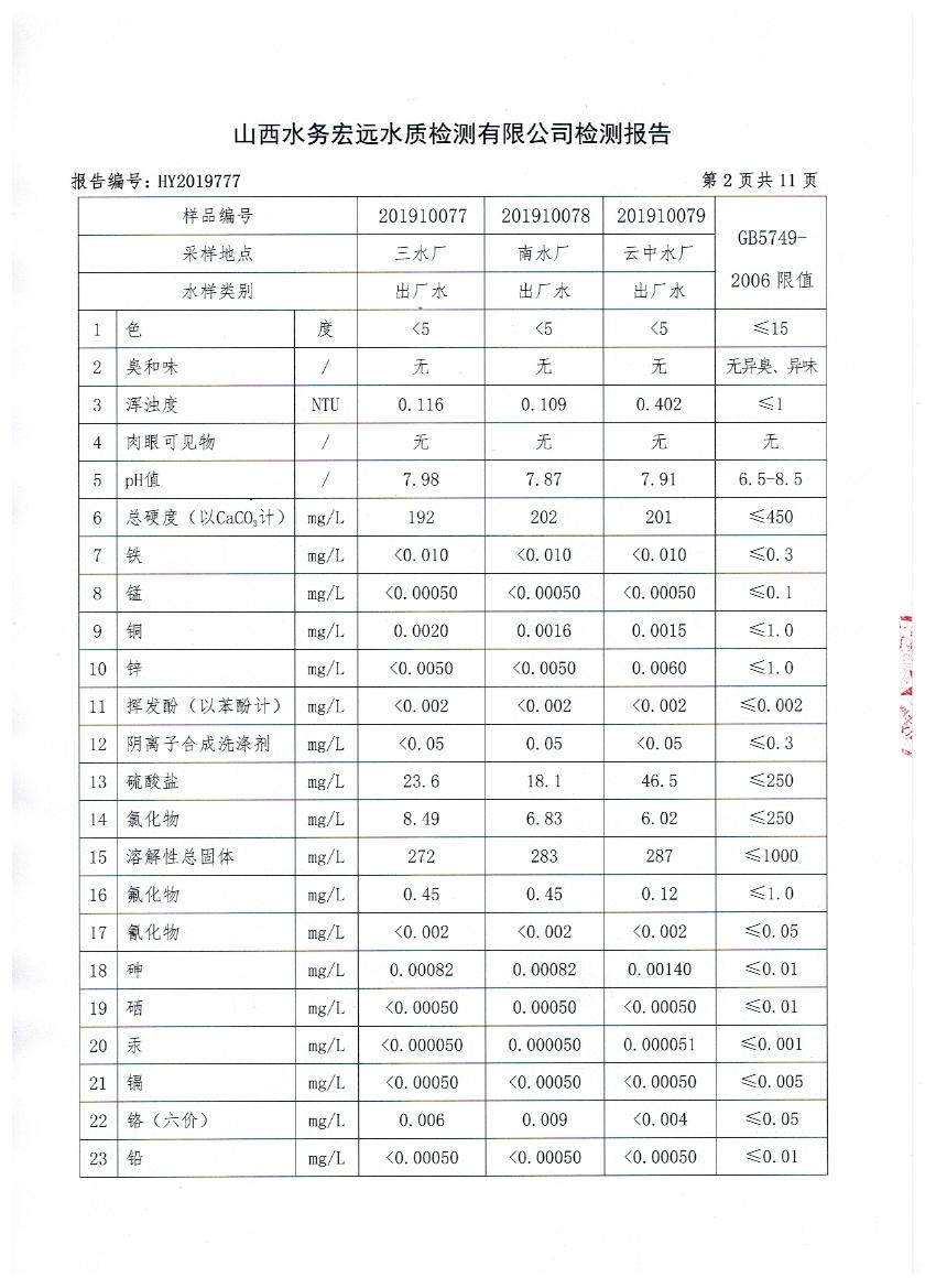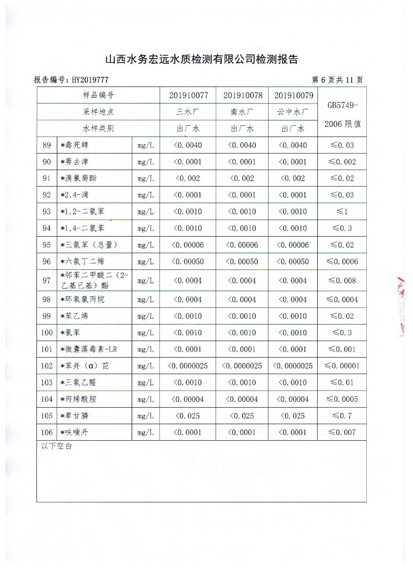 2019年忻州城區(qū)公共供水南水廠、三水廠、云中水廠出廠水106項水質(zhì)全分析