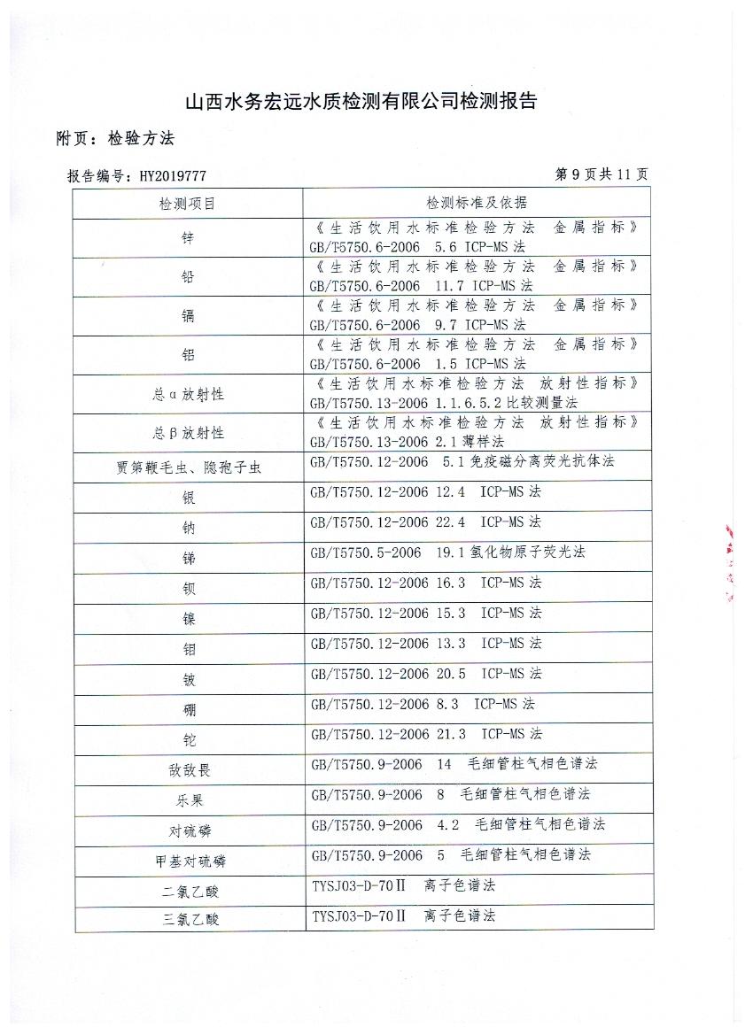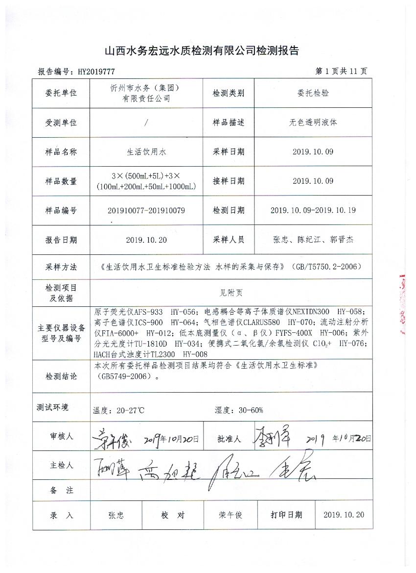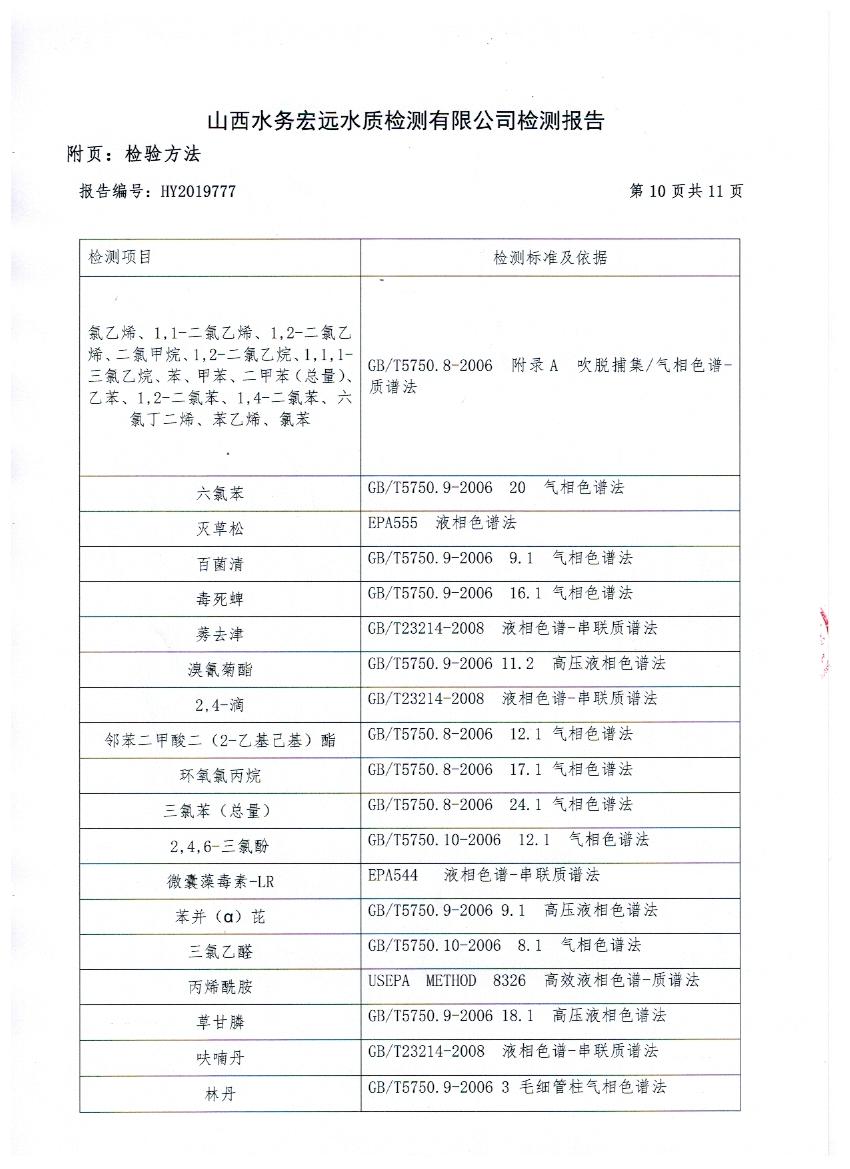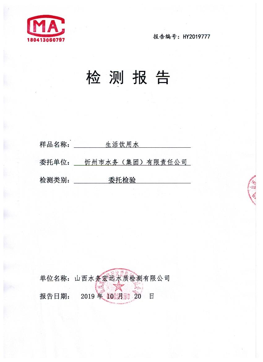 2019年忻州城區(qū)公共供水南水廠、三水廠、云中水廠出廠水106項水質(zhì)全分析